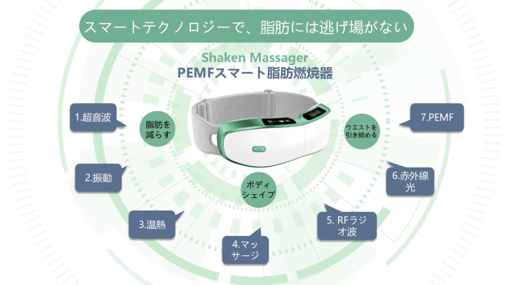 多くの人が直面する「脂肪を減らす」という課題。食事制限や運動を続けても、なかなか結果が出ずに悩んでいませんか?そんなあなたのために、確実な物理法則とスマートテクノロジーを組み合わせた、新しいソリューションが登場しました。それが「Shaken Massager PEMFスマート脂肪燃焼器」です。